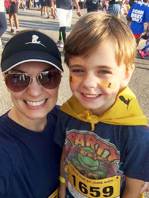 The weekend was a great reward for a yucky week. Walt and I had the chance to participate in the St Jude Walk/Run to End Childhood Cancer. It is such a fun event and it was nice to spend some one on one time with my boy. He is growing so fast and sometimes I forget to notice. Time alone with me doesn't happen very often so he took advantage of it by filling all the minutes of the day telling me every thought that came to his sweet mind. His brain is always operating on super speed. I kind of can't wait to see what he will create with that amazing brain of his.